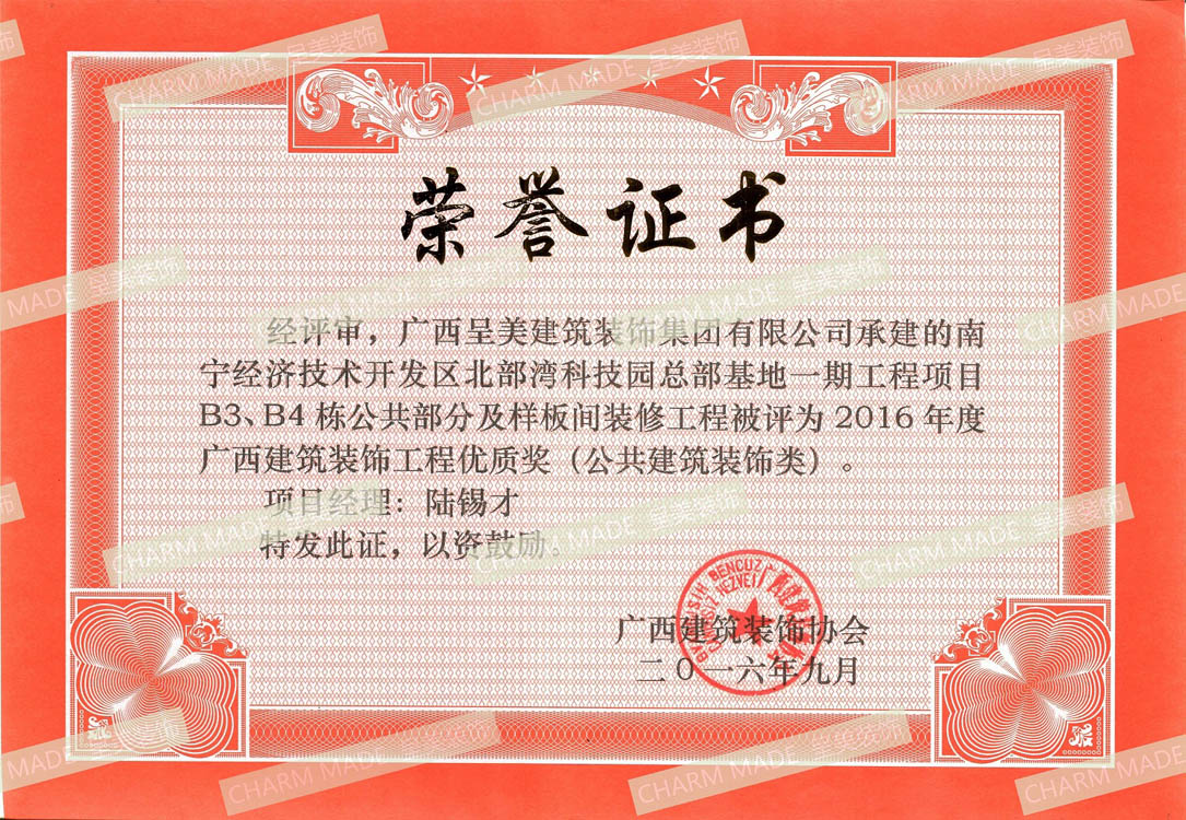 2016年度廣西建筑裝飾工程優(yōu)質(zhì)獎(總部基地項目)